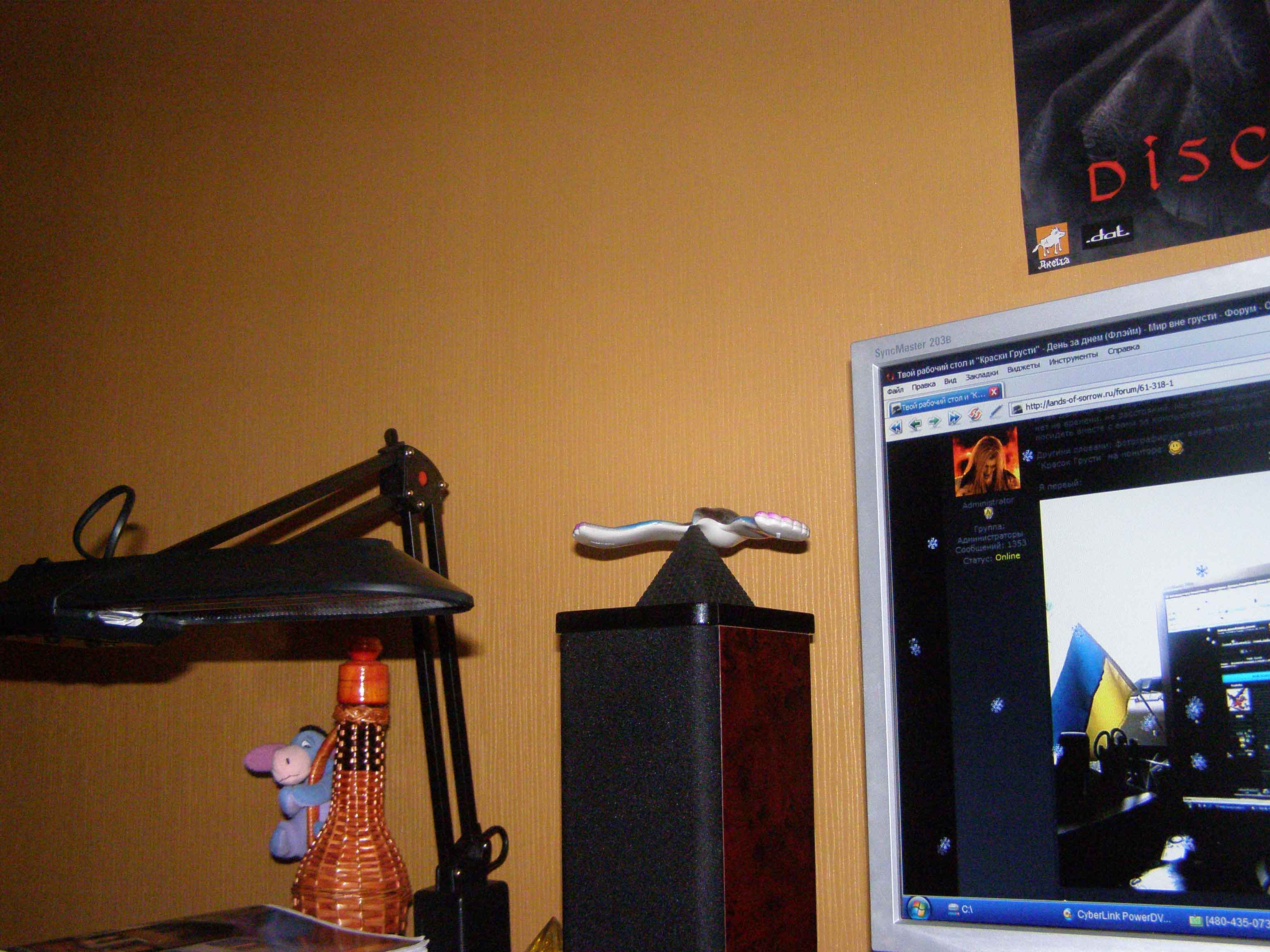 И так делимся фотографиями, с ваших квартир, домов, котеджев. Сейчас нет не времени, не расстояний. Мы сможем пернестись к каждому из Вас и посидеть вместе с вами за компьютером, глядя на "Краски Грусти"! Другими словами: фотографируем ваше место у компьтера с элементом "Красок Грусти" на мониторе!