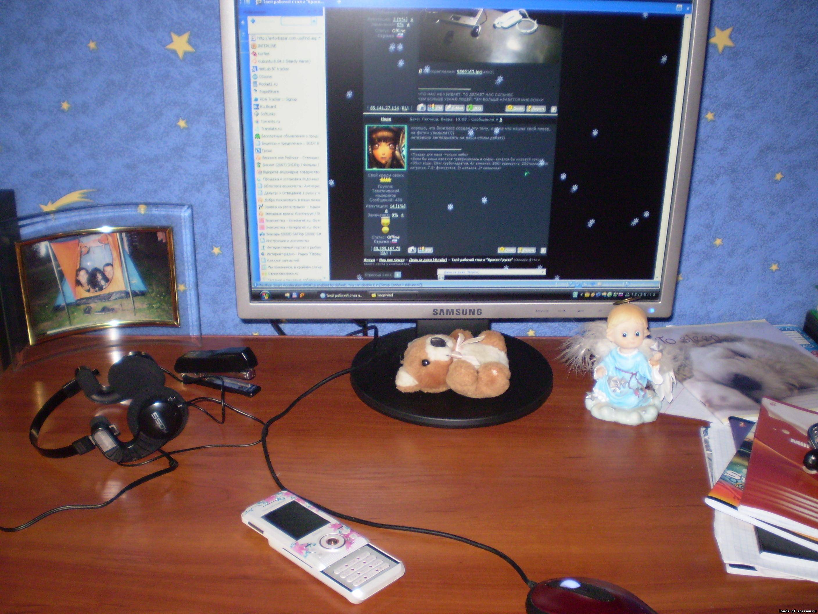 хорошо, что Винглесс создал эту тему, я тока что нашла свой плеер, на фотки увидила)))) интересно заглядывать на ваши столы ребят))